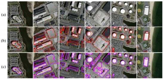 Building detection involves recognizing each building instance in a remote sensing image, applying object recognition techniques to obtain the location of each building instance as a rectangular bounding box, and determining the quantity of buildings. In recent years, as deep learning technology has rapidly advanced, a series of outstanding object detection algorithms have become available. These algorithms can be approximately divided into two categories. One category includes the two-stage object detection algorithms represented by the region-based convolutional neural network (RCNN) [17], Fast R-CNN [18] and Faster R-CNN [19] methods, whose main concept is to generate regional proposal boxes first and then input them into a convolutional neural network (CNN) for further classification. The other category includes single-stage object detection algorithms represented by the single-shot multibox detector (SSD) [20] and You Only Look Once (YOLO) [21] series of models, which constitute an end-to-end object detection framework that can directly output the category of each detected object. The aforementioned object detection methods have been applied for building detection in remote sensing images. Based on Faster R-CNN, Ding et al. [22] used deformable convolution to improve the adaptability to arbitrarily shaped collapsed buildings and proposed a new method of estimating the intersected proportion of objects (IPO) to describe the degrees to which bounding boxes intersect, thus offering better detection precision and recall. Bai et al. [23] proposed a Faster R-CNN method based on DRNet and ROI Align and utilized texture information to solve region mismatch problems. Building detection method can approximately recognize building locations but cannot achieve pixel-level segmentation, which is more accurate.