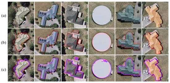 Building edge extraction refers to marking and extracting the outer boundaries of building instances in remote sensing images. Building edge extraction methods prioritize building boundary information and attempt to reach beyond pixel-level footprint segmentation to directly obtain regular and accurate building contour lines. Recently, some researchers have introduced building boundary information into deep learning networks to improve their building extraction accuracy. Lu et al. [30] adopted a deep learning network to extract building edge probability maps from remote sensing images and applied postprocessing to the edge probability maps based on geometrical morphological analysis to achieve refined building edge extraction. Wu et al. [31] proposed a novel deep FCN architecture, named the boundary regulated network (BRNet) architecture, which utilizes local and global information to simultaneously predict segments and contours to achieve better building segmentation and more accurate contour extraction. Jiwani et al. [32] improved the DeepLabV3+ [33] model by introducing a feature pyramid network (FPN) [34] module to achieve cross-scale feature extraction and designing a special weighted boundary diagram to penalize incorrect predictions of building boundaries. Li et al. [35] combined a graph-based conditional random field model with a segmentation network to preserve clear boundaries and fine-grained segmentation. However, due to the structural diversity of buildings and their complex environments, accurately locating and recognizing building edges remain significant challenges.