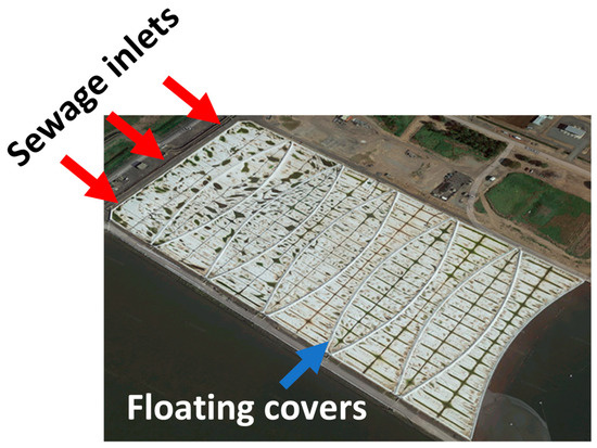 Melbourne Water Corporation (MW) owns and operates a large wastewater treatment facility in Werribee, Victoria, Australia, known as Western Treatment Plant (WTP). WTP is a combination of lagoon systems and activated sludge plants that treat more than 50% of Melbourne’s wastewater [1]. The raw and untreated wastewater flows into the first (also known as primary) treatment lagoons at WTP to allow preliminary sedimentation of the suspended solids in the raw sewage. The first 8 hectares of these primary treatment lagoons are covered with multiple high-density polyethylene (HDPE) geomembrane sheets to capture all emissions from the lagoon and support the anaerobic processes which start the breaking down of the sewage and that produce the biogas which is converted into electricity that operates the plant, see Figure 1.