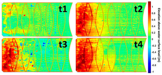 Digital elevation model of floating cover from t1 to t4.