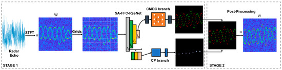 To further achieve more accurate associations, a post-processing stage is proposed. Since the extracted m-D components of the dual-branch network are represented as sets of positions consisting of multiple fragments, we used the first-order parametric continuity condition to re-link the m-D components and interpolation to generate fine m-D estimation. The overall architecture of the proposed method is shown in Figure 5.