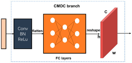 The feature map generated from the backbone, serves as the input of the CMDC branch, with a size of the of the original image. The feature map is compressed by convolution with a kernel to reduce the number of channels. After the compressed feature is obtained, it is flattened and sent to the fully connected (FC) layers, which consist of two layers. The features are flattened before being sent to the FC layers. The FC layers work as a classifier in the entire convolutional neural network, determining whether components exist in divided grids. A dropout operation is embedded in the FC layers, so that it does not rely too much on the local features to prevent overfitting, and the model has stronger generalization performance. Assuming that there are m-D components on the TFR, then the features are restored to by a reshape operation.