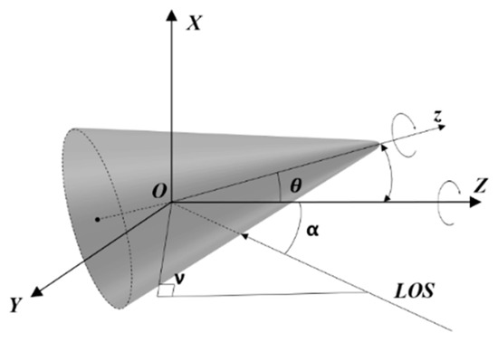 As a typical multi-scatter target, a cone-shape target is widely used to model ballistic targets with micro-motion (The proposed method is model agnostic. The cone model is taken as an example, and the trainset is generated by this model). For simplicity and convenient analysis, a cone-shape target was considered in this paper. The reference coordinates system and the target local coordinate system were established with the center of mass as the coordinate origin , as shown in Figure 13. is the azimuth of radar line of sight (LOS) at the reference coordinate system. The angle between LOS and Z was set to .