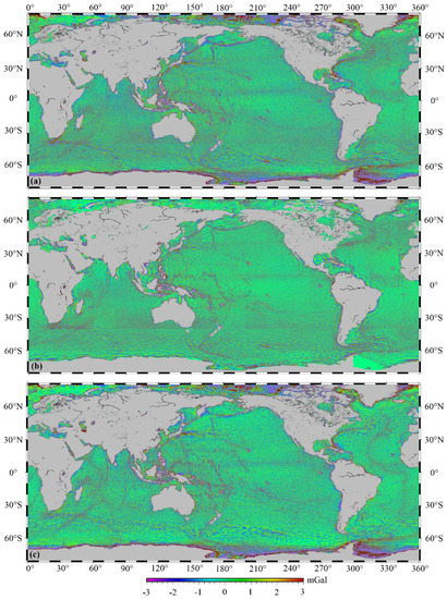 - Guo, J.; Luo, H.; Zhu, C.; Ji, H.; Li, G.; Liu, X. Accuracy comparison of marine gravity derived from HY-2A/GM and CryoSat-2 altimetry data: A case study in the Gulf of Mexico. Geophy. J. Int. 2022, 230, 1267–1279. [Google Scholar] [CrossRef]