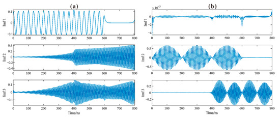 The VMD decomposition results for (a) the simulated channel-1 and (b) channel-2.