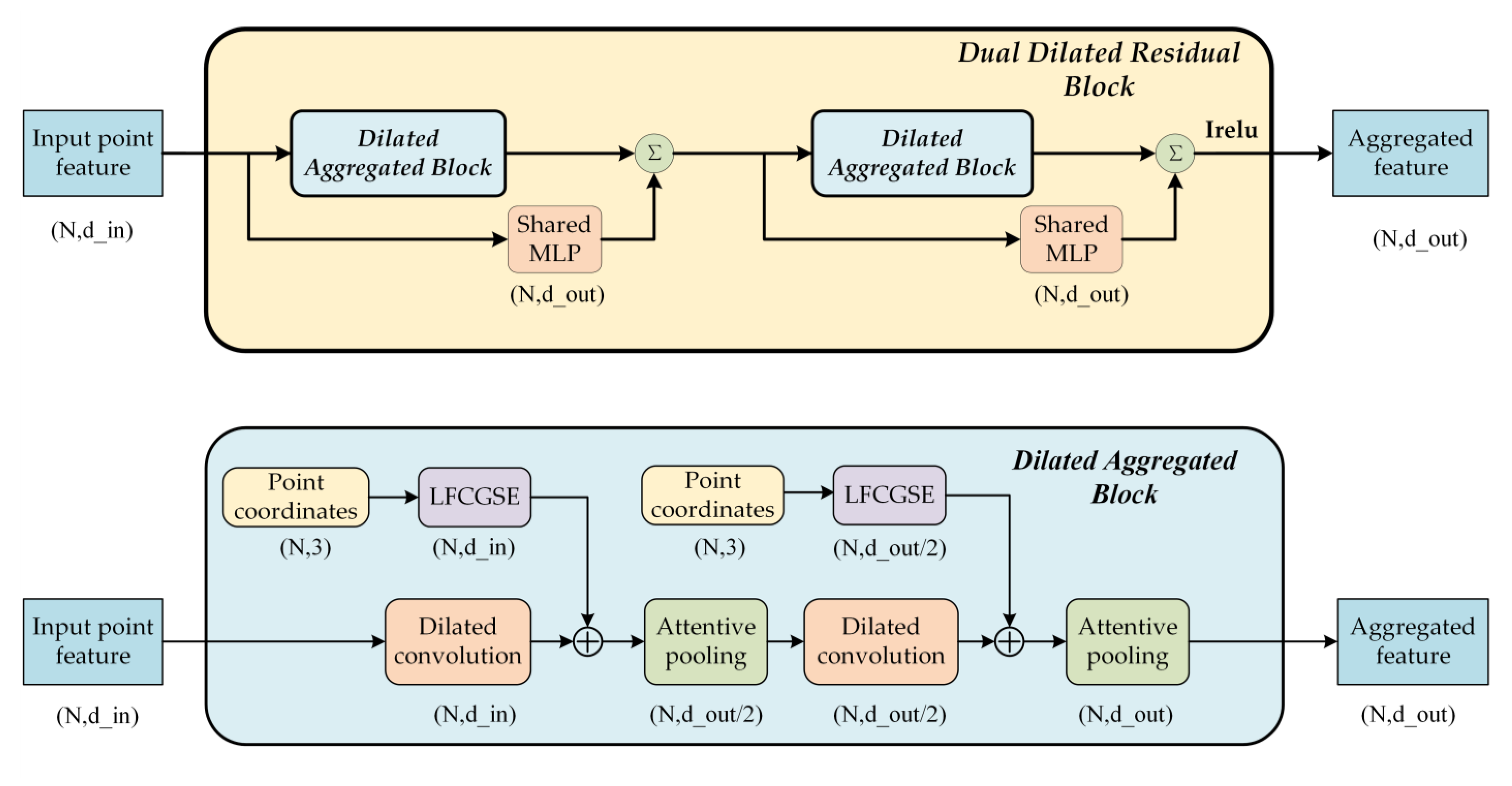 - The dual dilated residual block (DDRB) is replaced with the dilated residual block (DRB) in RandLA-Net [26].