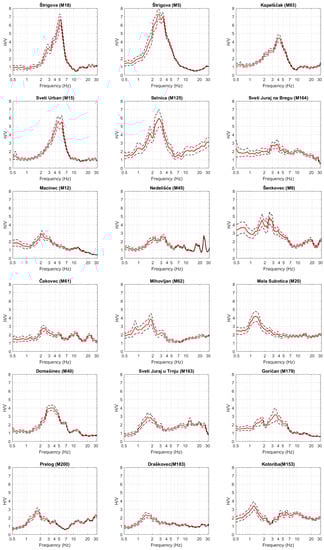 - Stanko, D.; Markušić, S.; Gazdek, M.; Sanković, V.; Slukan, I.; Ivančić, I. Assessment of the seismic site amplification in the city of Ivanec (NW part of Croatia) using the microtremor HVSR method and equivalent-linear site response analysis. Geosciences 2019, 9, 312. [Google Scholar] [CrossRef]