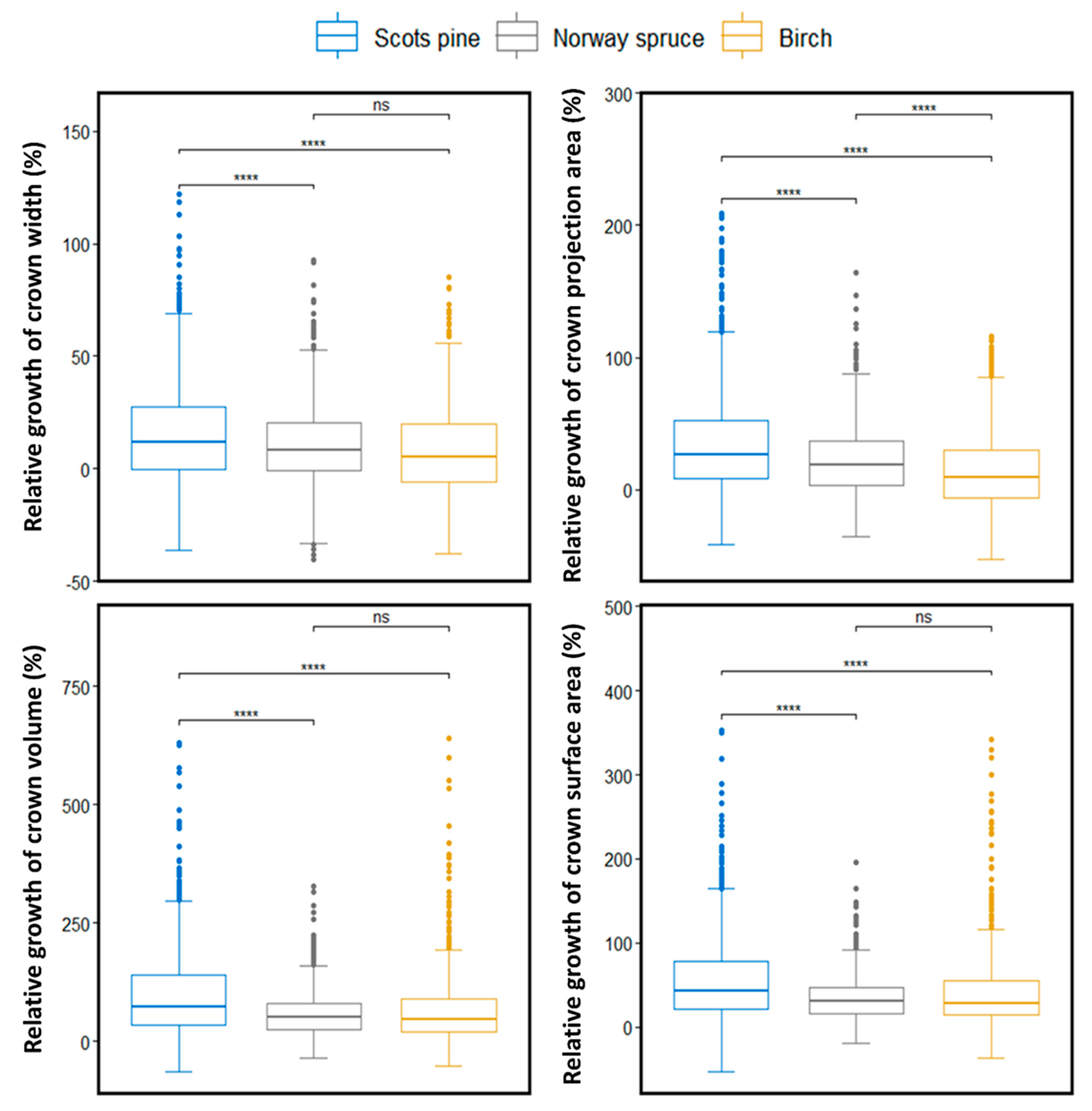 2.3.4. Crown Growth Estimation and Statistical Analysis