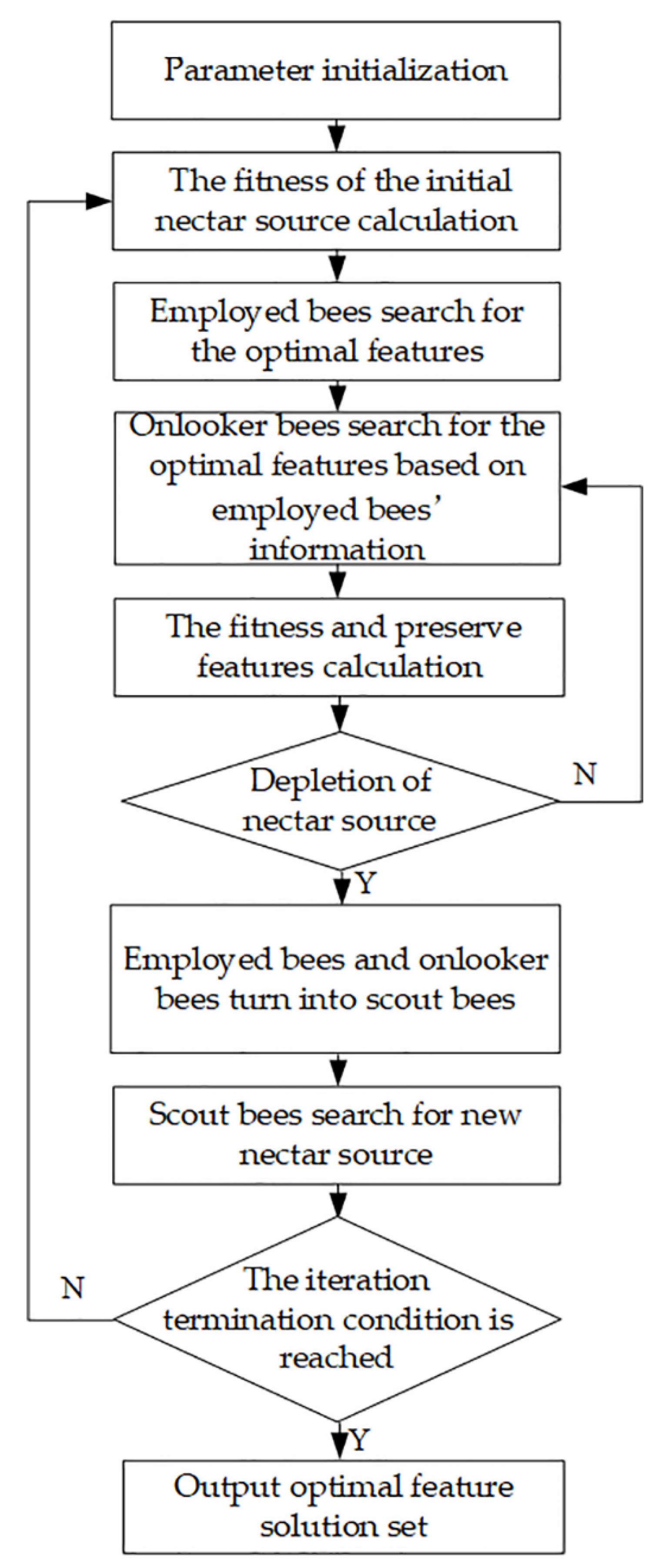 3.2. Feature Selection Based on the Improved Artificial Bee Colony (ABC) Algorithm