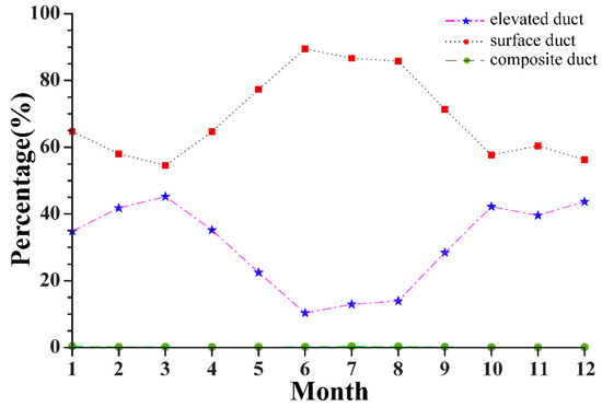 Monthly variations in the proportion of surface, elevated, and composite ducts within total ducting events.