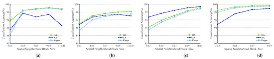 Due to the maturation of spectral imaging technology in recent years, hyperspectral imaging (HSI) is able to capture a large amount of valuable spatial information, spectral features, and other information, and is widely used in various fields such as agricultural monitoring [1], medical imaging [2], mineral exploration [3], food safety [4], and military defense [5] as information that complements remote sensing application techniques [6]. Many techniques have been proposed to capture rich data features in order to exploit the full potential of HSI data in areas such as image denoising [7,8], spectral unmixing [9], anomaly detection [10,11], target detection [12], and landcover classification [13,14,15]. However, HSI classification has been an active topic in the HSI community and presents a huge challenge.