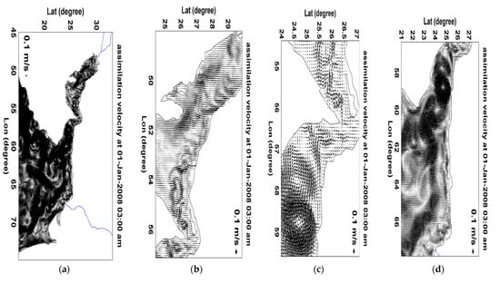 For many years, geoscientists have been interested in the study of sea surface currents (SSCs) and their causes. As countries exchanged goods, food, etc. through the sea, the need to gain knowledge of ocean currents was felt, and they realized that, by understanding the process of SSCs, they could carry out economic activities more efficiently. The significance of modeling SSCs in different water bodies, such as rivers, lakes, and open seas, is crucial for economic, environmental, agricultural, and military purposes []. Various activities, such as port and coast management, marine transportation and navigation, search and rescue operations, tracking pollutants and oil spills, monitoring coastal water quality, and predicting energy production from sea currents, require modeling of SSCs. Detailed understanding of the SSCs is necessary for the accurate prediction of sedimentation in regions close to coasts and ports. Furthermore, by examining coastal currents, it is possible to make a correct prediction of the coastline for preparing maps of coastlines and water boundaries. It may even be possible to prevent human casualties by accurately modeling SSCs and providing warnings to fishing and sports organizations [].
