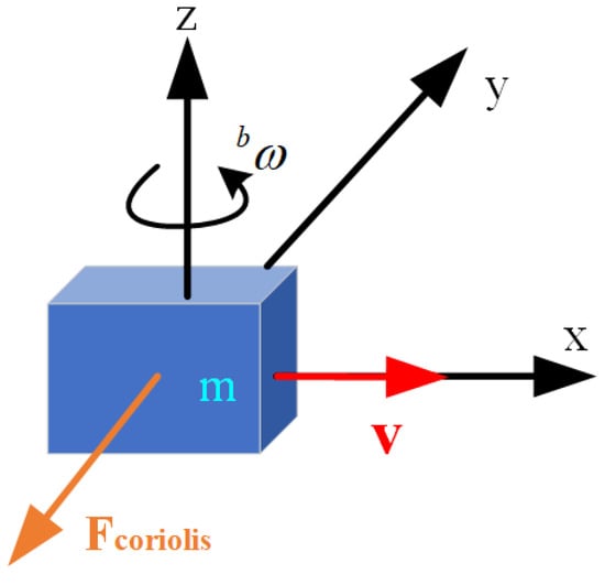 Coriolis forces. When a particle follows a straight line with respect to an inertial frame, it moves in a curve with respect to the rotational frame because of inertia. It can be considered that there is a force that drives the particle trajectory to build a curve in the rotating system, as shown in Figure 3. The Coriolis force is able to describe this shift, as shown in the following expression:
