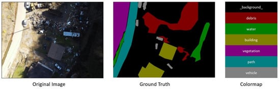 Despite all this development in semantic segmentation and computer vision, there is a shortage of low altitude, high resolution annotated images for UAV disaster damage analysis. RescueNet [41] contains images of Hurricane Michael. Annotations for 11 classes including road, damaged and undamaged buildings, vehicle, water, etc. are provided in RescueNet. This dataset is a great resource for disaster damage analysis with semantic segmentation. Our work is similar to this work except that we focused more on analyzing the debris. Additionally, RescueNet lacks good annotations for debris class. We believe that analysis of debris distribution can potentially provide a new insight in predicting, mitigating, and responding to disaster damage. ISBDA [42] provides a building damage analysis in three categories: slight, severe, and debris. However, this dataset does not have other classes such as road, water, and vehicles which are crucial for Search and Rescue (SAR) missions. Other research in this area, such as [47], used texture analysis on UAV images and showed that HOG (Histogram of the Oriented Gradient) filters can be effectively used in disaster debris identification. Ref. [48] used Bag-of-words (BoW) feature representation based models for damage classification.