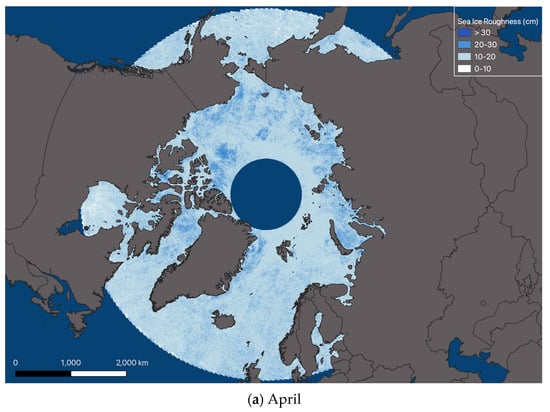 The Arctic is warming faster than any region on the planet [1] and sea ice is highly sensitive to this rapid climate change [2,3,4,5,6,7], and it has been rapidly declining over the past three decades in the Arctic region [8,9,10]. Since 1962, spaceborne sensors have mapped sea ice characteristics and have served as a valuable resource for understanding changes in the Arctic cryosphere [11,12,13,14,15]. In situ and airborne data acquisitions are challenging in the polar regions due to difficulties in accessing such a vast and extreme environment. Thus, satellite remote sensing has become a valuable technique for performing Arctic-wide spatio-temporal analysis, especially mapping sea ice characteristics. Satellite remote sensing techniques have been used in numerous studies to retrieve and map properties of sea ice over the Arctic [16,17,18,19,20]. These techniques provide Arctic researchers with sea ice characteristics such as ice age, extent, albedo, thickness, motion, and roughness. Sea ice surface roughness influences synthetic aperture radar and scatterometer retrievals of sea ice type [21], but few studies have explicitly and quantitatively mapped the roughness of sea ice on an Arctic-wide basis [16,19].