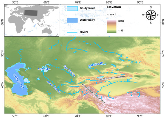 - Liu, H.; Chen, Y.; Ye, Z.; Li, Y.; Zhang, Q. Recent lake area changes in Central Asia. Sci. Rep. 2019, 9, 1–11. [Google Scholar]