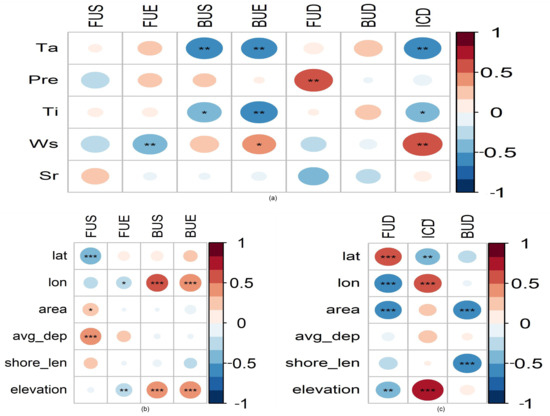 4.1. Correlation of Lake Ice Phenology Variables with Influencing Factors