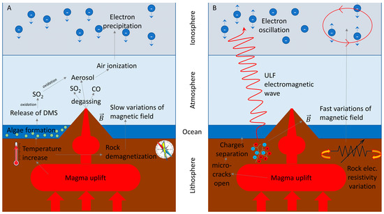 - Liperovsky, V.A.; Pokhotelov, O.A.; Meister, C.-V.; Liperovskaya, E.V. Physical Models of Coupling in the Lithosphere-Atmosphere-Ionosphere System before Earthquakes. Geomagn. Aeron. 2008, 48, 795–806. [Google Scholar] [CrossRef]