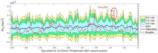 | 15 August | 80.31% | Not emitted by the volcano. It could be a secondary effect. | |