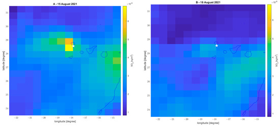 | SO2 | 15 August | 50.00% | They seem emitted by the volcano (anomaly clearly above volcano) |