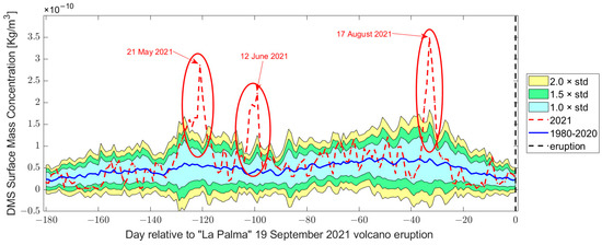 | DMS | 17 May | 79.76% | Not emitted by the volcano. It could be a secondary effect. |