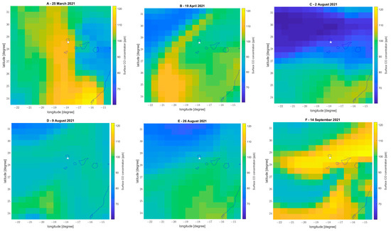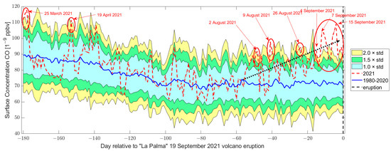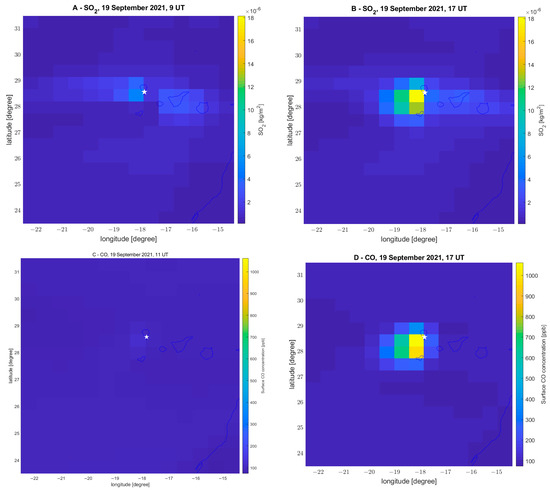 | CO | 24 March | 16.85% | Emission close to the volcano |