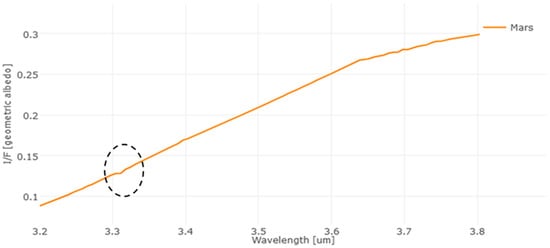In a previous study, Campbell et al. [] investigated hydrocarbon detection on Mars’s south polar cap, although the feature at 3.3 μm was difficult to interpret, due to strong absorption by CO2 ice.