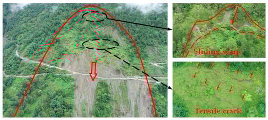 The obvious optical deformation characteristics of active landslides refer to the chair-like shape of the landslide, the local sliding characteristics with obvious color difference, as well as large-scale cracks, staggered platform ridges, etc. This study uses the manual search approach to identify the optical deformation characteristics of landslides.