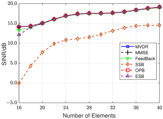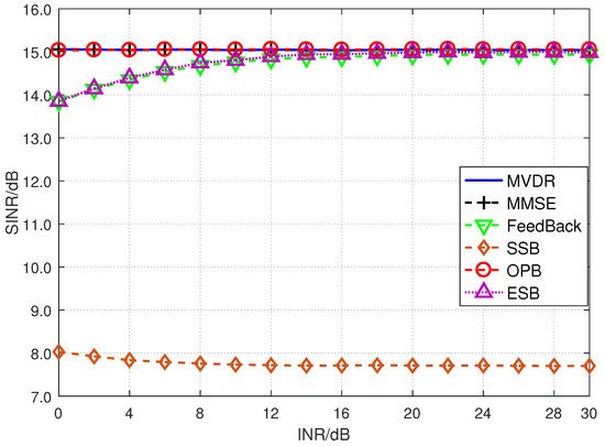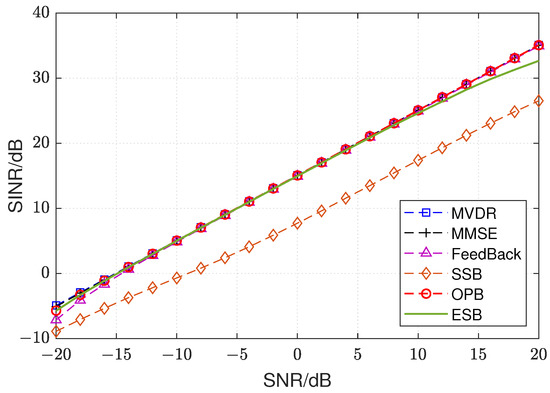 In this subsection, the output SINR of the proposed OPB is dealt with and compared with the optimal beamforming method to illustrate the performance of the proposed method.
