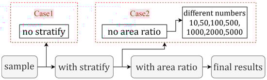 In this study, the stratified random sampling method is adopted. When stratifying, we follow the principle of the class area ratio. In this section, we explore the impact of different sampling methods on the validation results. Figure 5 shows a comparison of different sampling methods. A comparison experiment without stratification is added, along with a comparative experiment without considering the area ratio. When the area ratio is not considered, the number of points in each class remains the same. Therefore, we have added comparative experiments with different numbers of points.