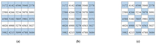 For simple HSI scenes, such as the Indian Pines dataset, the same ground objects are likely to be located over a large area, and similar objects theoretically share the same spectral characteristics. Therefore, we designed a simple spatial sampling strategy to reduce the number of pixels by spatial dimension sampling, using the sampled pixels to represent the surrounding unsampled pixels. This strategy retains the spectral characteristics of the objects while reducing redundant pixels. There are three sampling strategies: row, column, and cross sampling, which are shown in Figure 2. We record the spatial sampling operation as Sampling(∙), and the band image after sampling is expressed as: