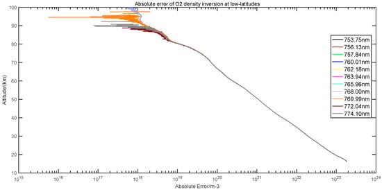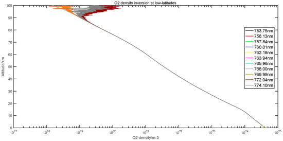 We found strong consistency in the inversion of 11 wavelengths below 85 km. At the altitude of 85–100 km, the inversion results of each wavelength show different trends. Among them, the inversion results of 769.99 nm, 772.04 nm, and 774.10 nm show a trend of increasing with height, and the inversion results of other wavelengths decrease with height.