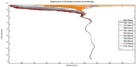 According to the analysis results presented in Section 2, we know that the inversion results of the 753–764 nm band are very close. Therefore, we choose one wavelength that can cover the height of near space and analyze the change of the results with latitude to obtain the detection accuracy of stellar occultation at different latitudes as shown in the Figure 11.