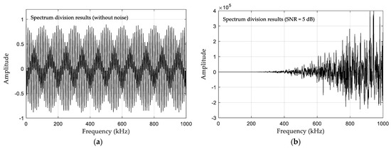 Results of spectrum division under two conditions: (a) spectrum-division results without noise; (b) spectrum-division results with SNR = 5 dB.