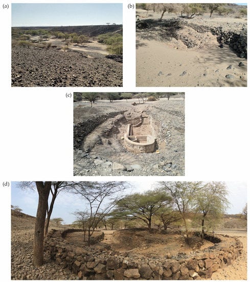 Landscape setting and examples of operational and disused Gabra wells at El Hadi, N. Kenya. (a) Landscape setting of the wells, (b) Collapsed well, (c) Operational well, (d) Enclosed well. Photos: Paul Lane & Freda M’Mbogori, 2019.
