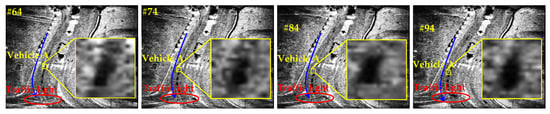 Notably, it is interesting that the commonality of the above video SAR moving target tracking methods is to indicate the real moving target with the help of the target’s shadow. This is because in video SAR, the Doppler modulation of the moving target echo is rather sensitive to target motion due to the extremely high working frequency, so a slight motion will lead to the large target location offset and target defocus in SAR images, as shown in