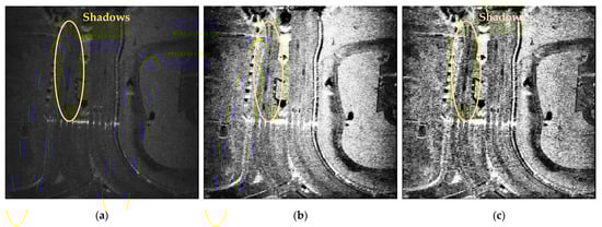 7]. On the one hand, the contrast between the moving target shadow and its background area, and the gradient information of the shadow intensity along the moving direction, are both closely related to the target speed. On the other hand, because the synthetic aperture time of a single frame image is short, the dynamic shadow also reflects the instantaneous position of the moving target in the scene [