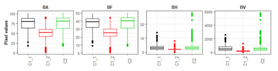 The RF classifier, on the other hand, is a robust ensemble machine algorithm that has proven to be a powerful tool capable to perform accurate supervised classification tasks [70]. Essentially, the RF classifier builds multiple decision trees, each one constructed using a random subset of the training data. Each individual tree delivers a class prediction, and the class with most votes becomes the model’s prediction. Compared to other classification algorithms which are also known to produce robust classifications in remote sensing problems (e.g., support vector machines SVM), the RF performs equally, with the advantage that is easier to implement as it requires less parametrization [71].