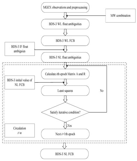 Then, the BDS-3 NL FCB could be successfully estimated by using the proposed method. The specific flowchart of the proposed estimation method is shown in Figure 2.