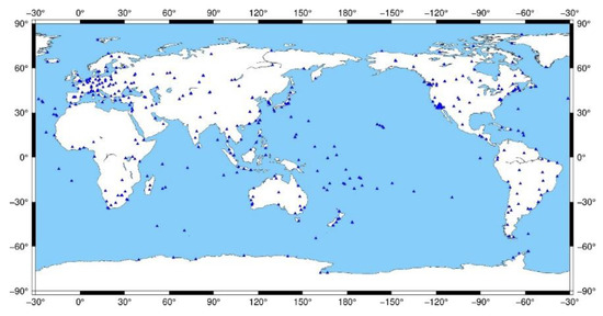 In this paper, in order to analyze the performance of the proposed method, we used the observation data of MGEX station in 2021 to estimate BDS-3 WL and NL FCB. The distribution of MGEX sites is shown in Figure 3.