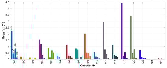 | CubeSat ID | Mean (s) | CubeSat ID | Mean (s) |