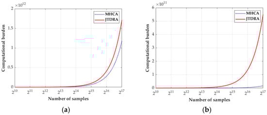 The total computational complexities of the two algorithms with respect to number of samples are shown in Figure 12, which indicates a clear improvement of the proposed MHCA on the computational burden. As is shown in Figure 12b, the computational complexity in dealing with spatial variance dramatically decreases compared to the interpolation operation in JTDRA.