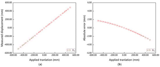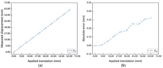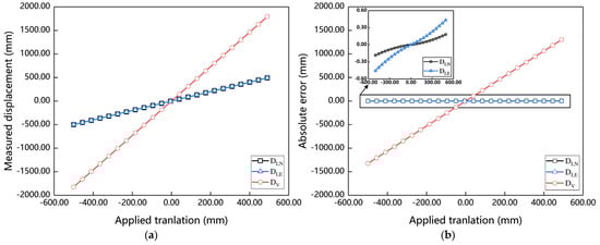 Measurement results of target point displacement in simulation experiment: (a) measured displacement; (b) absolute error.