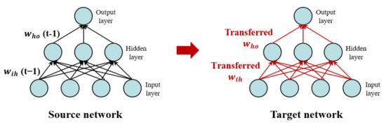 The frequently repeated learning within the sliding window requires high computing resources and tends to fit the local information. To overcome these issues, we propose transfer learning to mitigate these impacts from two aspects. Transfer learning techniques allow models to predict a new task (target network) using learned knowledge from the existing model (source network) [22]. For example, when new samples emerge, the INC learning begins with the transferred weights from a previously learned model as initial weights, to expand the knowledge of the existing model to adapt to new data (Figure 7). Transfer learning techniques should be considered when the source and target domains have similarities.