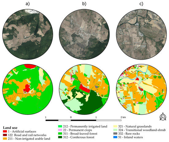The excerpts of the orthophoto AGEA 2017 and the land use map of the Basilicata region for each study area are depicted in Figure 2. The land use classes falling within the sites of interest are shown in Table 1.