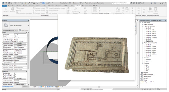 This paper presents the processing from a 3D reality-based acquisition of the slab in order to obtain an orthophoto on which accurate measurements can be taken for the following steps. The floor plan developed in CAD software was imported into Autodesk’s Bim Outoring Revit software, which supports the construction industry, fuelling new production and prefabrication channels in the design and management phases.