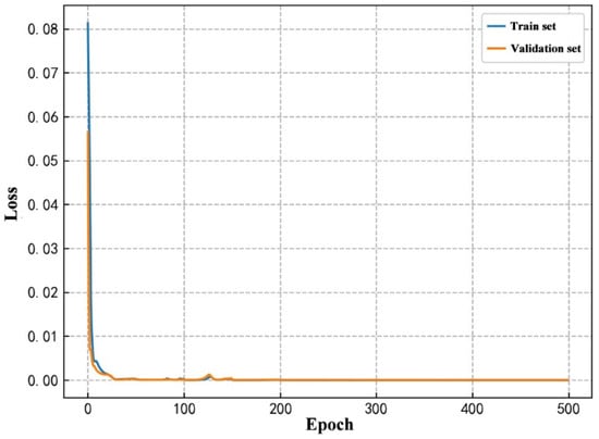 The atmosphere phase loss rate curve of the training set and the validation set. The loss value approaches 0 after 500 epochs.