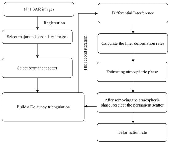 The framework of PS-InSAR analysis. The final deformation rate results of N + 1 SAR data are obtained by the flow in the figure.