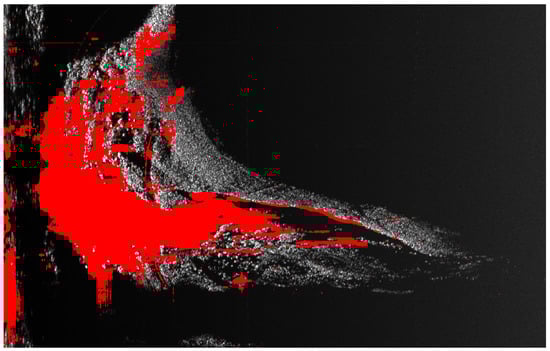 This experiment uses the ground-based SAR data of 40 scenes from 14:39 on 28 October to 03:59 on 29 October. First, the difference results between time t − 1 and time t are obtained as shown in Figure 15. From the difference map, it can be clearly seen that there is an atmospheric phase with a trend term, and there is relatively large atmospheric disturbance in the area farthest from the radar center. The atmospheric phase and deformation phase predicted by the LSTM model are subtracted from the interference phase, and the results are shown in Figure 16. Analysis of the results shows that when fitting the atmospheric phase in the horizontal direction in this area, there is still atmospheric turbulence in the elevation direction and in a small area. For this part of the atmospheric phase, the method of mask interpolation after unwrapping is used to remove it. For the phase residuals of adjacent moments, spatial domain filtering is first performed, and the filtering results are shown in Figure 17. The filtering will remove the noise interference in the residuals. After that, the minimum cost flow method is used to unwrap, and the unwrapping results are shown in Figure 18. After unwrapping, the atmospheric phase of the trend term can be clearly seen, and then the stable region is interpolated after masking, and the fitted atmospheric phase is shown in Figure 19. After subtracting the residual atmospheric phase from the residual, the residual deformation is obtained as shown in Figure 20. Analysis of Figure 18 shows that the residual deformation of most regions is predicted to be zero, which proves that the LSTM model can be used to complete large regions with high accuracy. In the deformation prediction, the real-time processing deformation variable at time t is obtained by adding the deformation residual to the predicted value at the end.