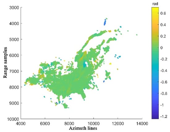 Residual phase diagram after unwrapping. The interference phase contains only a small amount of deformation phase and atmospheric phase, so it is easier to untangle and reduce the unwinding error.